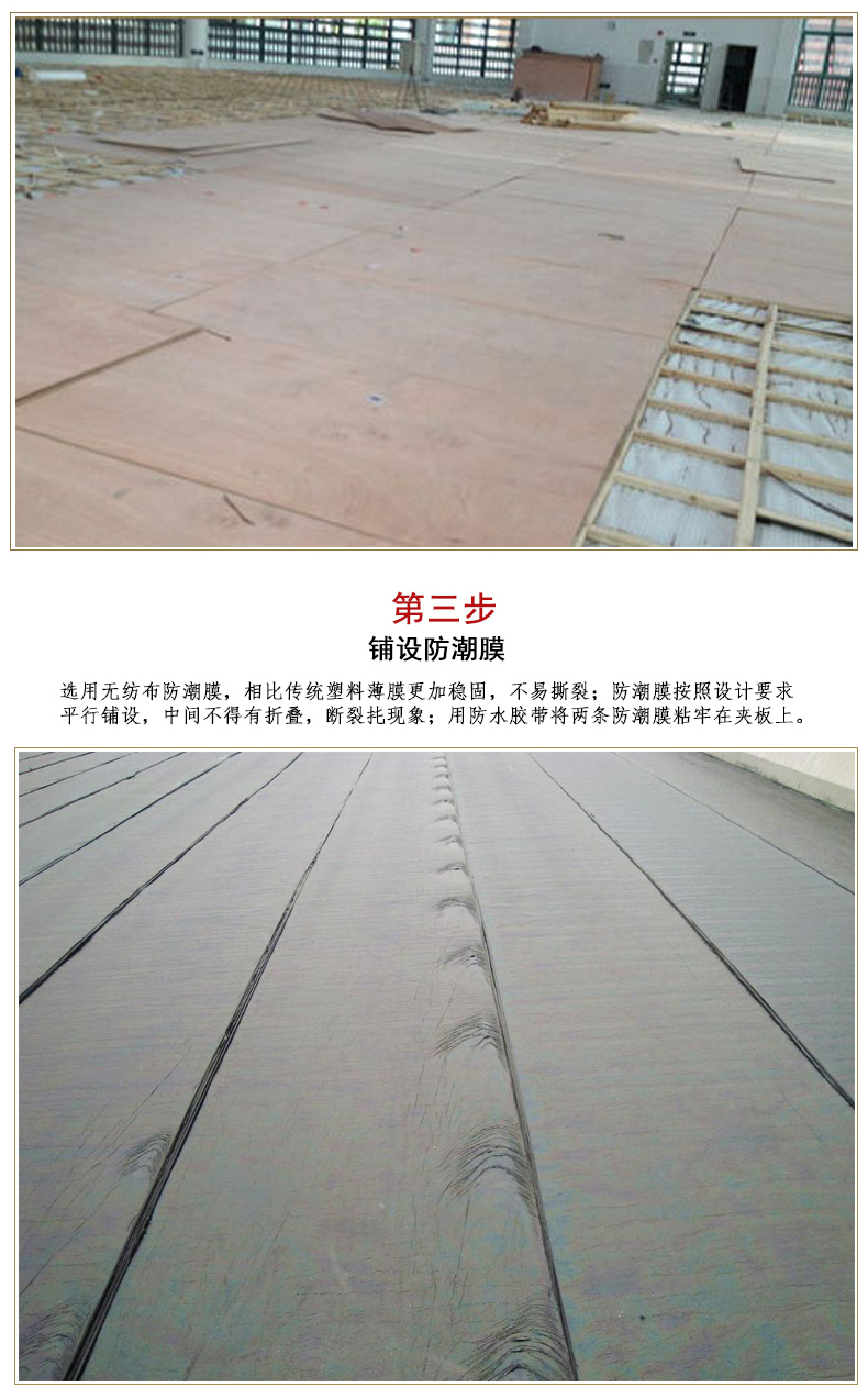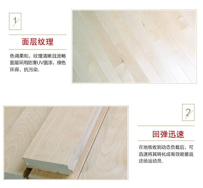 专业运用到运动场上的地板,全部是由纯实木原料构成。纯实木原料本身属于环保性原料,无任何刺激性气味,保证大家的身体健康。同时防水功能比较好,对于湿润的环境,有着良好的自动控制干湿度的功能。另外,运动馆地板的实木原料大多数是选用的国外进口树种。通过一系列的高温高压技术后,把细菌与树虫杀掉,随后再根据规格尺度进行款式设计,从而就制造出专业的运动馆地板。所以,如此珍贵,功能如此之多的木地板,想必都想让它能多用一段时间吧。