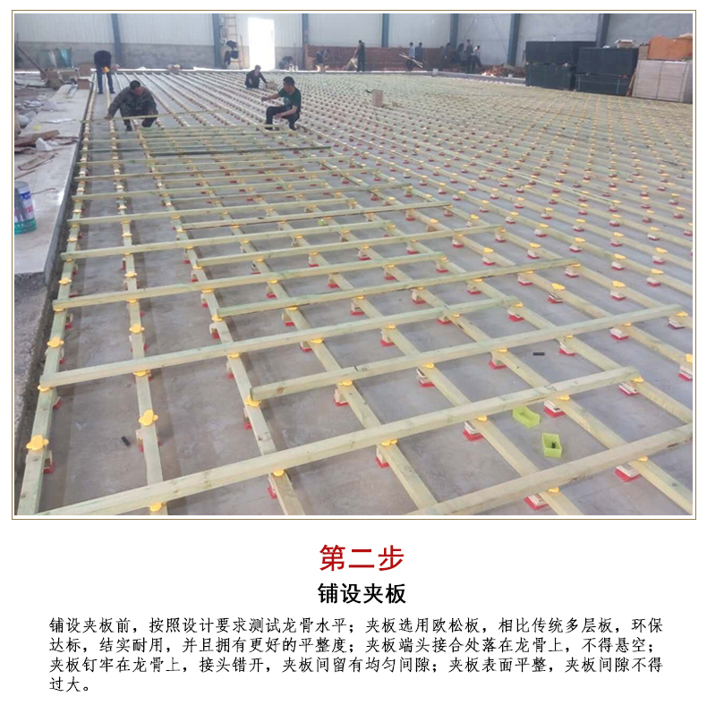 1、注意检查木龙骨的上平面是否平直顺畅;注意看一下安装、固定木龙骨的铁钉质量(主要指长度与硬度);